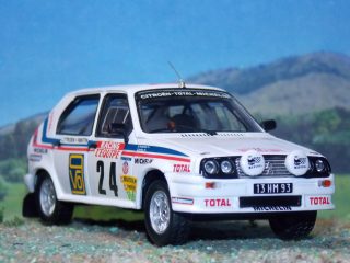 Miniatura realizada por “IXO”, sobre este Citroën Visa Chrono, participante entre 1982 y 1983 en varias competencias del WRC. En detalle su interior con todos sus relojes y los enormes faros auxiliares.