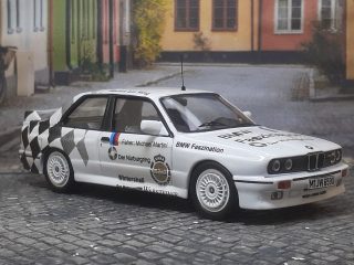 Miniatura realizada por «IXO». El modelo representa uno de proporcionados por BMW para recorrer el circuito de Nurburgring. Se destaca la decoración característica en la parte posterior.
