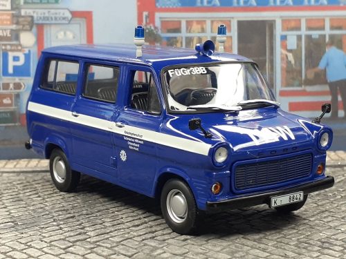 Miniatura realizada por Minichamps, en versión bus de la Transit de 1ra generación con los cambios aplicados en el año 1971. Muy fiel reproducción, en el interior se destaca las butacas con su correspondiente agarradera y el uso de dos colores en paneles de puertas e instrumentos. En la última imagen se la compara con una Transit Kastenwagen también de 1ra generación con trompa original.