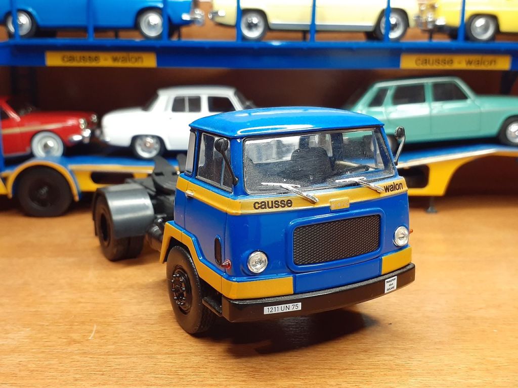 Miniatura realizada por Altaya para la colección «Camiones Articulados». En este caso representando un modelo de la empresa francesa «Causse-Walon», dedicada a la logística de vehículos.