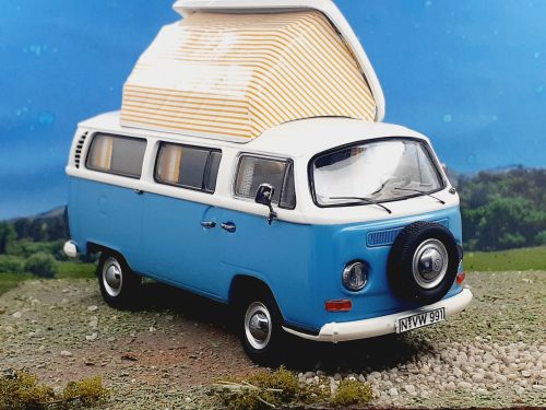 Miniatura realizada por «Schuco», sobre la base de un T2a (identificado por su paragolpes delantero tipo estribo y luces traseras pequeñas), con techo de apertura lateral. En sus interiores se detalla el mobiliario y cortinados.