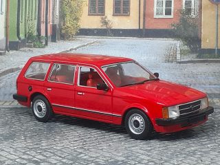 Miniatura realizada por «Minichamps» sobre un Caravan de 5 puertas. En el molde se nota lo sencillo del modelo real, interior a tono con la carrocería y llantas de chapa con centro plástico, en el detalle la nueva trompa de Opel, que se repitió casi idéntica en la primera generación del Opel Corsa.
