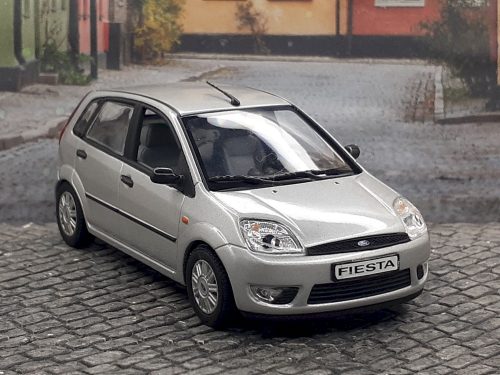 Miniatura realizada por «Minichamps» sobre el Fiesta 5 puertas de primera serie (recibió un restiling en Europa en 2008), con un interior detallado en color negro y las características luces sobre el parante C del auto.