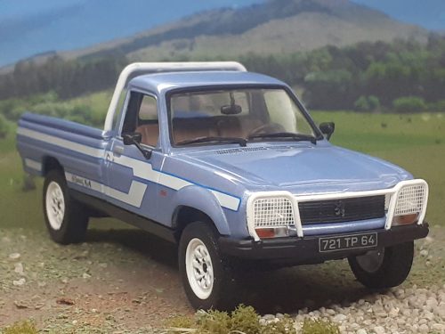Miniatura realizada por «Norev», sobre una Pick Up 504 4×4 Dangel, con combinación de colores y calcos exclusivo y accesorios de protección adicionales en trompa.
