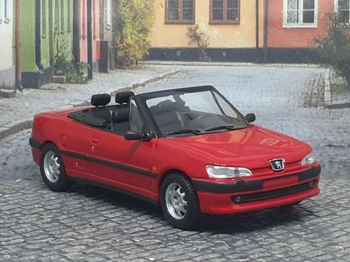 Miniatura realizada por «Minichamps» sobre un 306 cabriolet Fase 2, presente en el mercado desde 1998 hasta 2001 (cuando es reemplazado por el Fase 3). En un correcto color rojizo con interiores negros, donde se destaca la consola con apliques tipo aluminio y el gran sector de baúl.