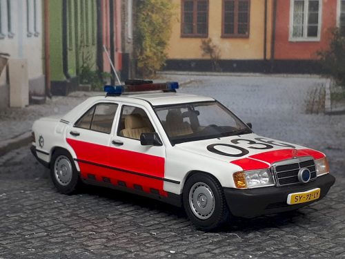 Miniatura realizada por Minichamps, sobre un 190E prestando servicio para la policía de Rotterdam. Se destacan su combinación de colore, luces sobre techo y una excelente definición de los interiores y la parrilla cromada.