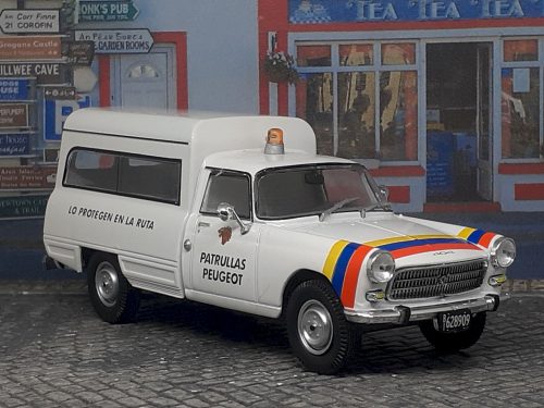 Miniatura realizada por “Salvat” para la colección «Vehículos de Reparto y Servicio» (Argentina) sobre el Peugeot 404 Cargo, al servicio de Patrullas Peugeot del año 1980. Una hermosa miniatura, de molde inédito.