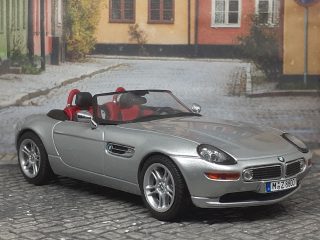 Miniatura realizada por «IXO», sobre un BMW Z8, en un clásico color plateado con interiores rojos. Se destacan los detalles interiores y el tablero sobre el centro del torpedo. En el lateral las insignias del modelo y una correcta definición de las llantas.
