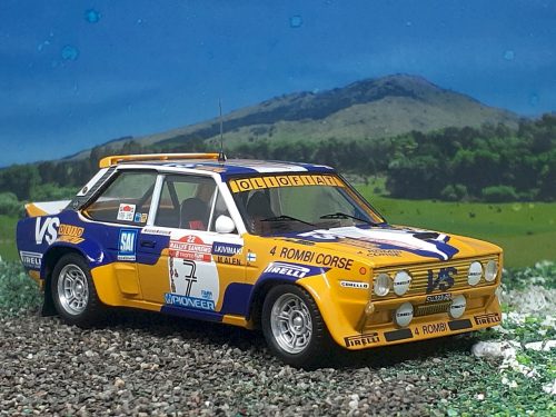 Miniatura realizada por «Trofeú» sobre el Fiat 131 Abarth con el que M. Alen corre en San Remo 1980. Una hermosa miniatura, con una decoración no común para el 131. En la parte posterior, la implementación de luces rectangulares en lugar de las clásicas con forma de T.