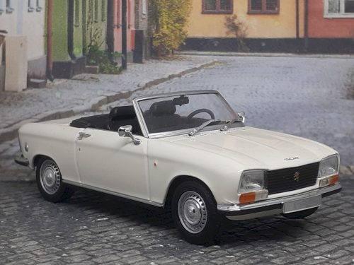 Miniatura realizada por «Minichamps» sobre un 304 cabriolet, con motor S, del año 1972. En un color sobrio, deja al descubierto su interior sencillo y en el sector trasero la cola redondeada y luces pequeñas.