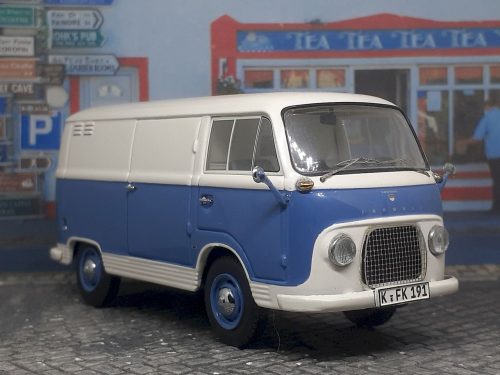 Miniatura realizada por “Schuco» sobre una Ford Taunus Transit, en una combinación de colores de época, con buenos detalles en fotograbados. En el comparativo, una VW Transporter de misma época, en donde se observan las similitudes y sus diferencias.