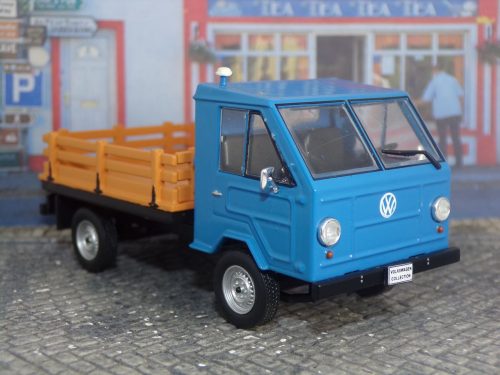 Miniatura comercializada por «Planeta D’Agostini», para la colección «Colección VW», sobre este raro y simpático VW Hormiga. Líneas rectas y caja madera hacen la diferencia, el color es acertado.