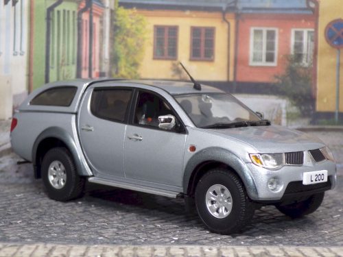Miniatura realizada por «Vitesse» sobre una Mitsubishi L200 de 4ta generación, bicolor y con una muy linda cúpula integrada. Sin cúpula, se observa el detalle de la caja con apertura de portón.