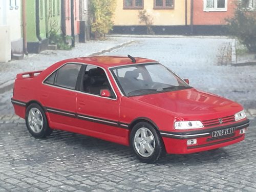 Miniatura realizada por «Norev», sobre un Peugeot 405 T16, de segunda generación, con todos los detalles del modelo de competición, en un clásico color rojo. Se destaca el interior con toques deportivos, el alerón y sus llantas de gran tamaño.