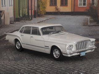 Miniatura comercializada por «Salvat», para la colección «Autos Inolvidables Argentinos», sobre este Valiant II, con un interesante color blanco y los cromados acordes del modelo.