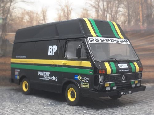 Miniatura realizada por «Premium ClassiXXs», sobre un VW LT 28 en configuración furgón techo elevado, para asistencia de competencias del equipo BP MotorSport.