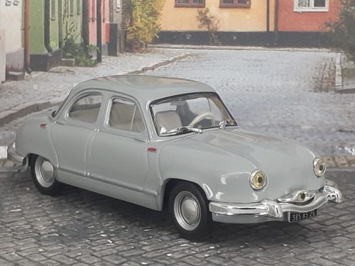Miniatura comercializada por «Altaya» para la colección «La Route Bleue» (Francia), sobre un Panhard Dyna Z y su forma aerodinámica, representando una parada en un café de Paris.
