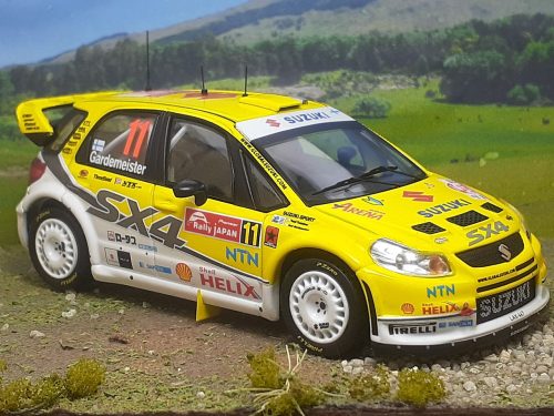 Miniatura realizada por «IXO», sobre este Suzuki SX4 WRC participante del Rally de Japón del año 2008. Una muy lograda reproducción, con muchos detalles tanto en el interior como en el exterior con sus logos y accesorios propios de competición.