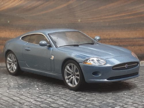 Miniatura realizada por «IXO», sobre un Jaguar XK coupé de segunda generación, previo a los cambios ejecutados en 2009. En el interior se destaca por los varios tonos y en el sector trasera las salidas de escape una para cada línea de cilindros.