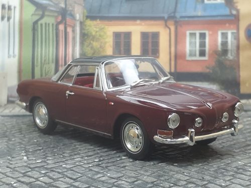 Miniatura realizada por «Minichamps», sobre un VW Karmann Ghía Tipo 34, con una combinación de colores oscuros para la época. Todos los detalles cromados y de interior. En el comparativo lo vemos con el Karmann Ghía Tipo 14, en donde se ve el cambio de diseño a líneas más rectas.