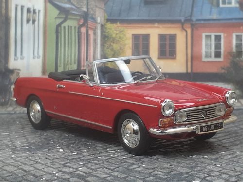 Miniatura realizada por «Minichamps», sobre este Peugeot 404 Cabriolet, con los cambios del año 1966 en donde se incluye en par de faros auxiliares en su parrilla. Interior completo y logos de la firma Pininfarina.