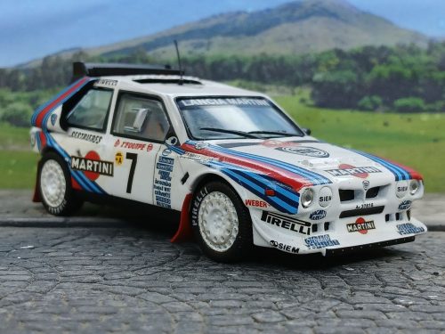 Miniatura realizada por IXO, sobre este Lancia Delta S4, con el que H. Toivonen se lleva la victoria en el Rally Montecarlo. Una muy linda miniatura, con todos sus detalles interiores, con jaula, motor y demás elementos a la vista.