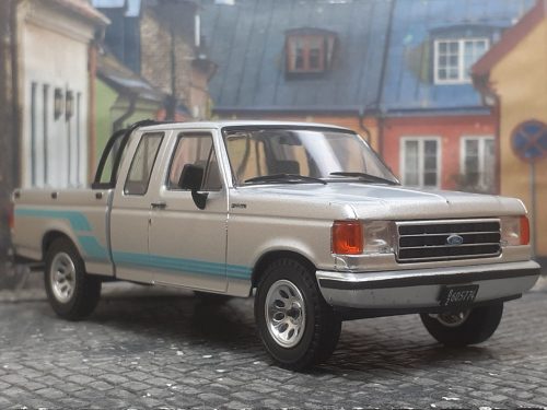 Miniatura realizada por «Salvat» para la colección «Autos Inolvidables Argentinos 80/90», sobre una Ford F100, en configuración XLT Supercab. Detalle de frontal de 8va generación, llantas especiales y los calcos que recorren la carrocería.